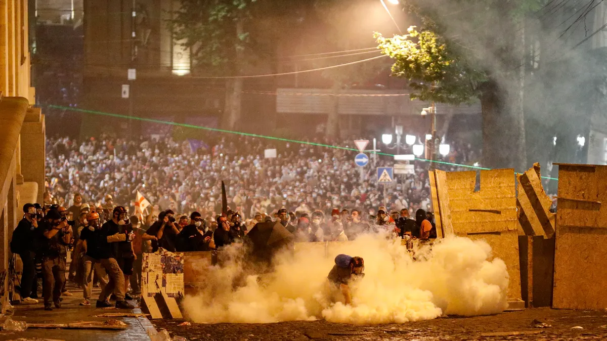 Young Georgians frustrated with their government distancing itself from the West have been a permanent fixture in the continued demonstrations against the law over the past two months. One of the most striking examples of the government’s anti-Western shift came in a speech by Georgian Dream’s billionaire founder Bidzina Ivanishvili on 29 April, in which he accused a Western “global party of war” of conspiring to meddle in Georgia’s internal affairs.