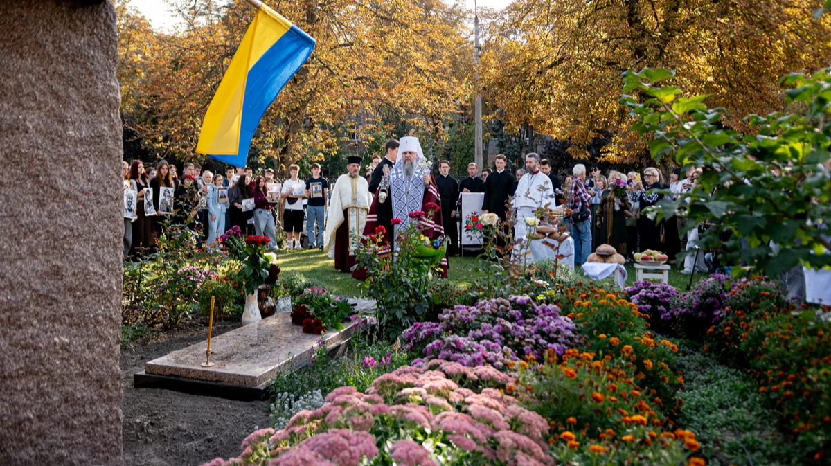 Панихиду служит глава Православной церкви Украины, митрополит Епифаний. Настоятель церкви, священник Стефан Яремчук поименно перечисляет «невинно убиенных и замученных украинских журналистов Георгия, Павла, Максима, Веру, Александру, Викторию…» Список кажется бесконечным. Студенты, выстроившись в шеренгу, держат черно-белые фото.