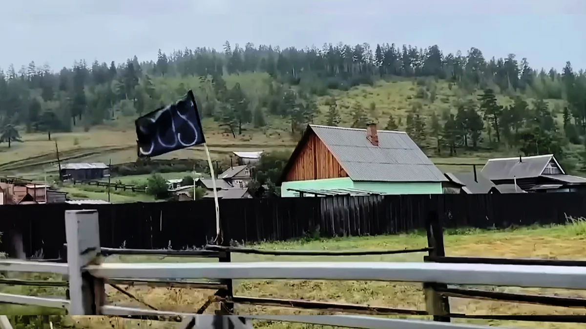 Черный флаг SOS в селе Ошурково. Фото: скриншот из видео / Говорит НеМосква / YouTube