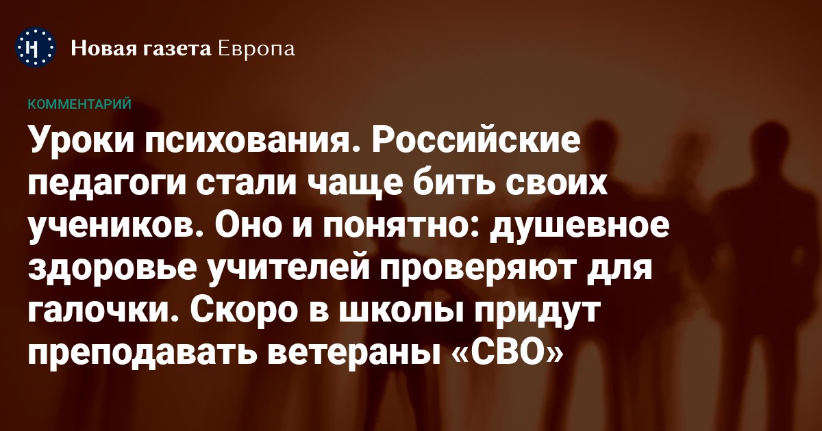 А это значит, что к тем учителям, которые и в мирное время не уважают учеников, не умеют справляться с дисциплинарными проблемами без насилия, не умеют спокойно и дружелюбно общаться с детьми без напоминания «я начальник — ты дурак», не способны ясно мыслить и формулировать высказывания, добавятся еще и новые учителя с реальным опытом войны. Этот опыт глубоко травматичен как для тех, кто подвергался насилию, так и для тех, кто сам проявлял насилие. Это опыт физической и душевной боли, страха смерти, экзистенциального ужаса, собственный опыт применения насилия. По разным данным, от 15 до 80% участников военных действий страдают от посттравматического стрессового расстройства; среди самых распространенных его проявлений — не только тревожность, чувство вины, стыда, ночные кошмары, флешбэки, но и раздражительность, агрессивность, неконтролируемые вспышки гнева — ровно то, чего так не хватает сегодняшним школьникам в их повседневной реальности.