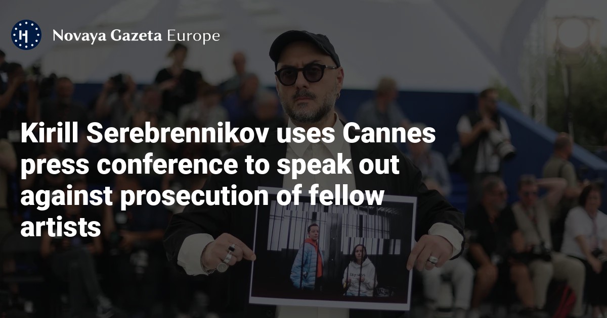 Film director Kirill Serebrennikov appeared with a photo of two fellow artists facing lengthy jail sentences in his native Russia at a press conference for the première of his film Limonov: The Ballad at the Cannes Film Festival in France on Monday.