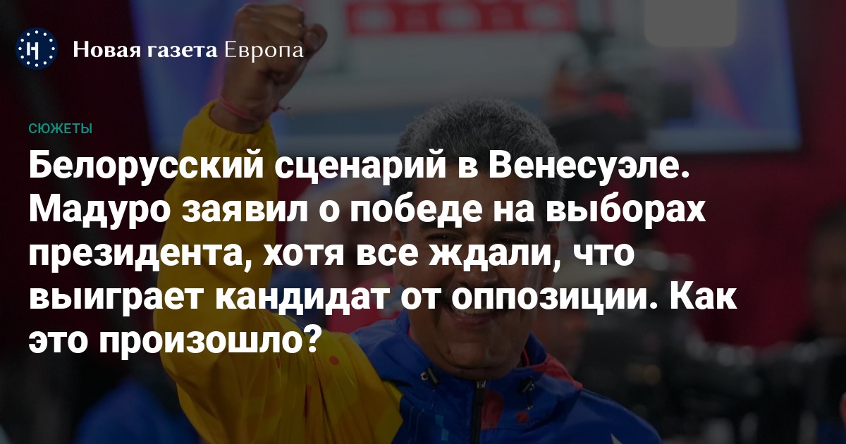 Президент Венесуэлы Николас Мадуро заявил о своей победе на президентских выборах и, судя по всему, будет занимать этот пост третий срок подряд. Оппозиция обращает внимание на многочисленные фальсификации и нарушения при голосовании и подсчете голосов. Данные многочисленных экзитполов также показывали, что избиратели отдают предпочтения главному сопернику Мадуро — Эдмундо Гонсалесу.