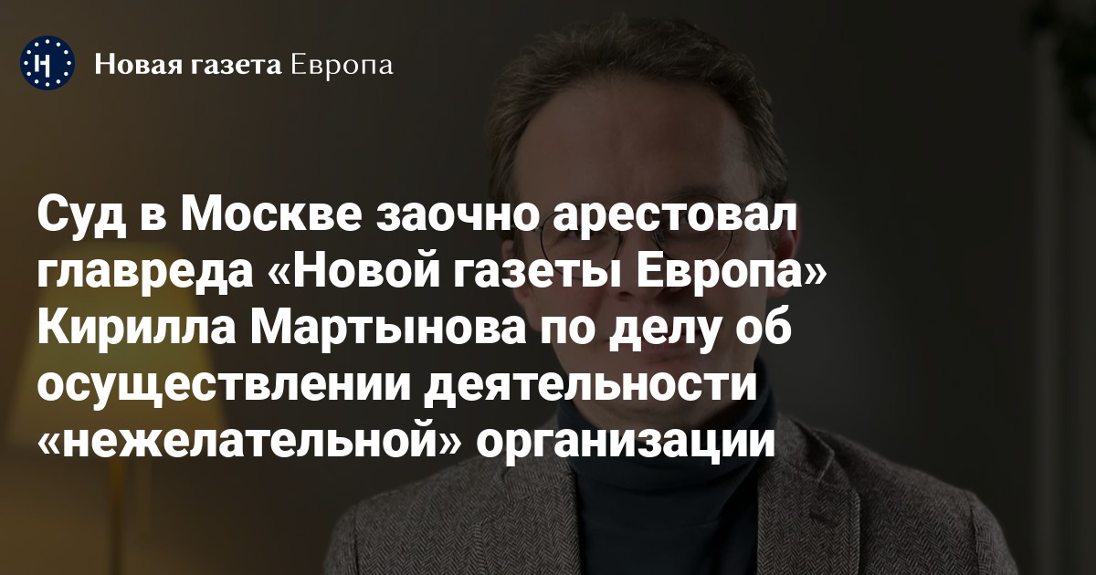 Басманный районный суд Москвы заочно арестовал главного редактора «Новой газеты Европа» Кирилла Мартынова по делу об организации деятельности «нежелательной» организации (ст. 284.1 УК).