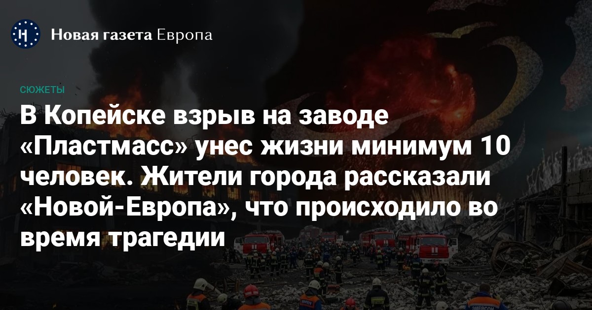 Серия крупных взрывов и последующий пожар на заводе «Пластмасс» в Копейске, из-за которых содрогнулись дома не только в самом городе, но и в соседнем Челябинске, унесли жизни как минимум десяти человек. 19 человек ранены, 12 работников завода всё еще ищут. В регионе объявлен траур.