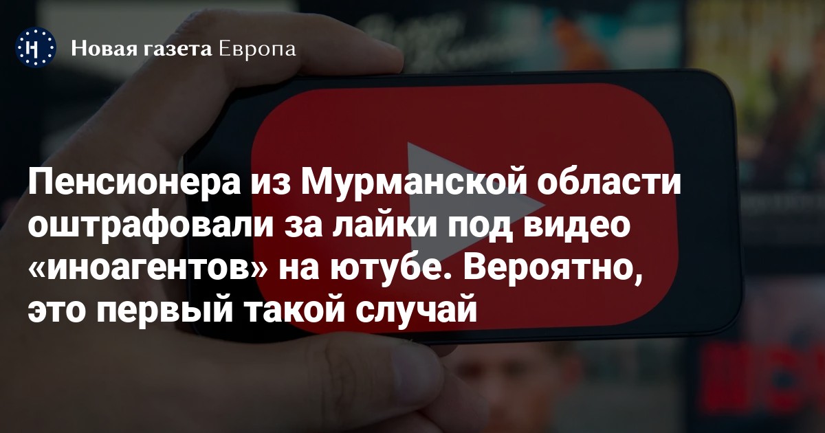 Пенсионера из Мурманской области оштрафовали за лайки под видео «иноагентов» на ютубе. Вероятно, это первый такой случай